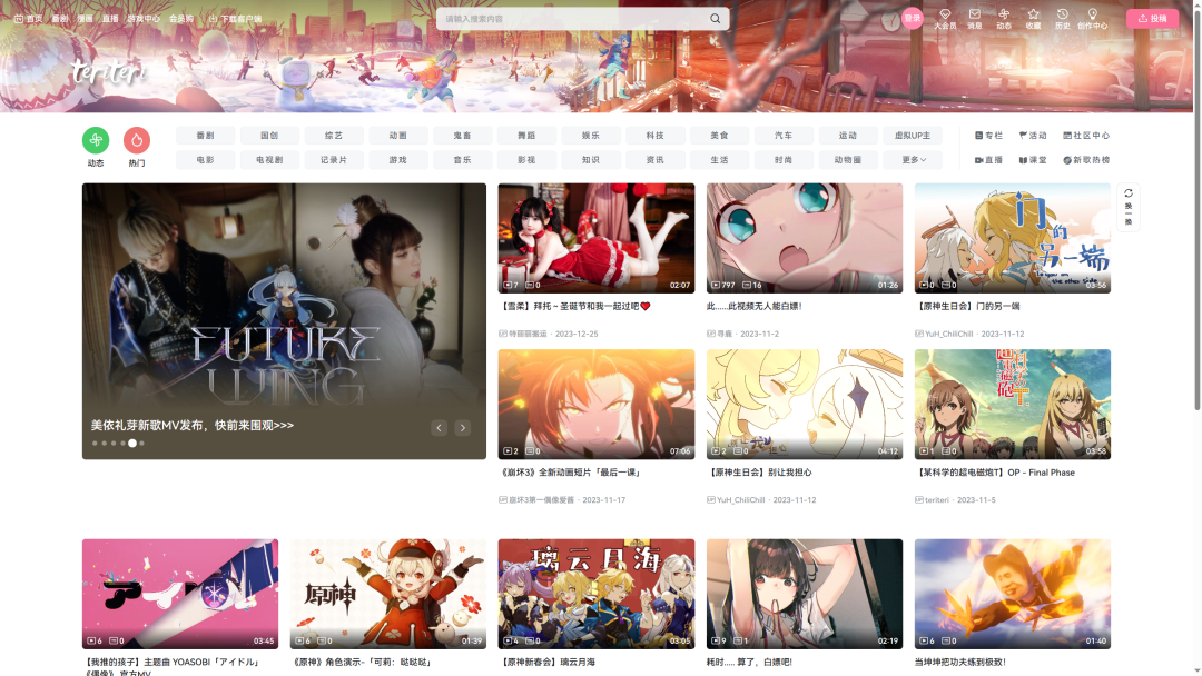 Teriteri —— 一个采用前后端分离的模式,参考 Bilibili PC 端,基于 SpringBoot + Vue3 实现的弹幕视频网站。